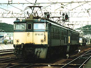 | EF63は、碓氷峠越え専用の電気機関車で、峠を越える列車全ての、峠の下側(横川側)に重連(2両)で連結されます。 つまり、峠を登るときは、横川駅で列車の最後部に連結し、後ろから後押しする形で列車を押し上げ、軽井沢駅で切り離します。 |
